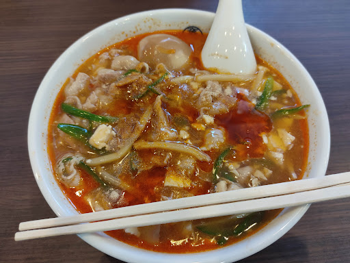 Read moreRead more仕事が始まるんで必要な工具を探してたら開店前にそれなりの行列発見(゜ロ゜; 秋田では珍しく思わず中に(^-^) 中は満席レジで名前と人数そして携帯の番号を教えて車で待機(^-^) いいシステムですね~ありがたいです(^^) 接客も丁寧だし好印象レジのお嬢さん綺麗だしね(^^) そんなんは置いといて中はオープンキッチンの感じで掃除が行き届いていたよ座敷に座り注文おいは、スーラー湯麺紅(くれない) わかんなくてお姉さんに色々聞きました(^^; 味なんだけど、旨いその後辛い(^-^; 「酸っぱさが来て辛い~」ってくんだけど、それが癖になる(^^)汗だくで完食 紅を食べきると次回から更に辛いメニューを注文出来るんで更に辛いの頼んでみたいです。後日スーラータンメン紅より更に辛いエンドレス5倍を注文(^^; 先に言います。面白半分で頼む物で無いです(^-^;勿論俺はスープ迄飲み干し完食したから言います。旨いのは旨いんだが今回何故か麺が辛い?と言う摩訶不思議な現象が発生 見た目は前回の紅とほぼ変わらないのに一口食べた瞬間から唇が辛いと言うか痛い(__