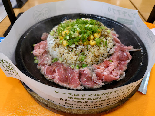 Read more御所野イオンのフードコートにあるペッパーランチ。初めて利用しました。牛肉たっぷりペッパーライス大盛をいただきました。 熱々の鉄板にまだ乗せたばかりと思われる牛肉にどんと乗ったライス。ソースが付くのかなと思ったらそういうわけでもない。ただかき混ぜて食え!ってものみたい。 思ったより味は薄いが、コショウが効いてまずまずな旨さ。脂っこいのでちと後半は飽き気味。味変できる付け合わせや、ソースなんかあっても良さそう。 鉄板の保温力は高...