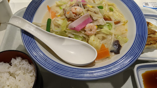 カップラーメンでしか食べたことのなかったリンガーハットさんを初利用。野菜たっぷり長崎ちゃんぽんと、皿うどん、餃子をいただきました。ちゃんぽんスープはカップラーメンで食べたことのあるあの味。間違い無いうまさで、濃厚。たっぷりの野菜に負けておりません。ちゃんぽんならではの太麺もマッチ。初めて知ったのが、この「野菜たっぷり」には専用のドレッシングが2本付くこと。生姜ドレッシングと、柚子胡椒ドレッシングで味変が出来る。どちらもさっぱりとさせてくれるので、どっしり濃厚なスープを爽やかに変えてくれるので、最後まで美味しくいただける。皿うどんもボリュームたっぷり。野菜たっぷりのアンがパリパリの麺にかかり、かかったところからシナシナと柔らかくなっていく麺と、パリパリとが口の中で合わさって楽しい美味しい。期間限定らしいトムヤムクンちゃんぽんが凄く引かれるので、訪れる機会...
