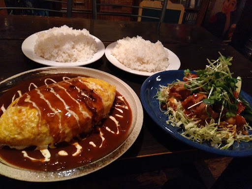 座ると店主様がメニュー表を持ってくる 良い意味で脱力感あふるる魅力的な雰囲気のお方で 店内の飾り物も納得ですな🫶 注文はもちろん看板メニュー的なやつのオムライスだ それと鶏唐揚げ ライス ライスでいってみる 量を聞いたのだが予想どおり『ぜ〜んぜん分からない⤴️ ぜんぜん⤴️』と ご飯を盛るゼスチャーだ🤣 そして勝手に こジャレた盛りでくるもんだと決めつけていたのがハズレてしまう💪 ケチャップライスで400g〜450g 白米で300g位✕2(もっとかも)オムやデミソースで白米いける👍 唐揚げには野菜たっぷり フレッシュライム付きのオール手作りで味付けはお見事 この時間帯でこのレベル料理は秋田市で貴重 食の文化財だ 20分でペロリンチョ しかもお安くて2200円💦 おそい時間でも安心なされよ...