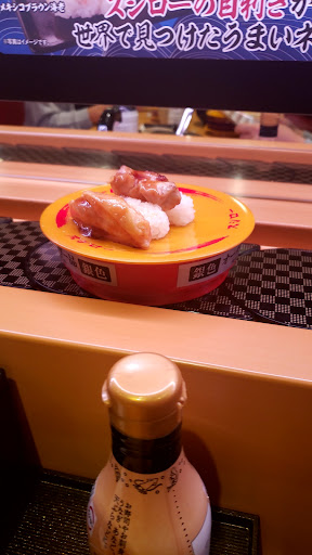 普通の回転寿司チェーン店です。 回転寿司店では、美味しい方ですが、価格もそれなりで、美味しいネタは、高いです。クエの握りは、美味しいですが、一皿二貫で、300円、大切真鯛は、一皿二貫で、150円です。一皿二貫で100円のネタは、マグロ、サーモン、ブリ、サバ、イカ、エビくらいで、種類が少なく感じます。みそ汁は、貝のみそ汁等が有りましたが、あら汁はありません。オススメのネタは、クエ、生サーモン、大切真鯛、ブリで、ブリだけ一皿100円でお得です。他のネタも一皿の価格が300円、200円、150円と高いですが、恐らくは価格以上の価値が有るのだと思われます。お得な感じは有ります。平日の夜に来店しましたが、けっこう混んでました。土日祝日には、絶望的なくらい並んでいるイメージが有り、来店する気になりませんが、ネットで予約ができるアプリが有るようなので、事前に予約してから来店するのが、良いみたいです。回転レーンには、ボチボチ握り置きのお寿司が流れていますが、基本的に食べたいネタを、タッチパネルのメニューで注文して、握りたてのお寿司を頂く仕組みです。握りたてと言う事もあり、美味しいですが、このお店は、醤油皿が無いのが残念です。醤油皿の溜り醤油につけて食べると、更に美味しく頂けます。ただ、溜り醤油は、分量を間違えると大量に残してしまう為、お店としても、醤油皿を置くのはよろしくないと言う事でしょうか。大量に残らないように、浅く小さめの醤油...