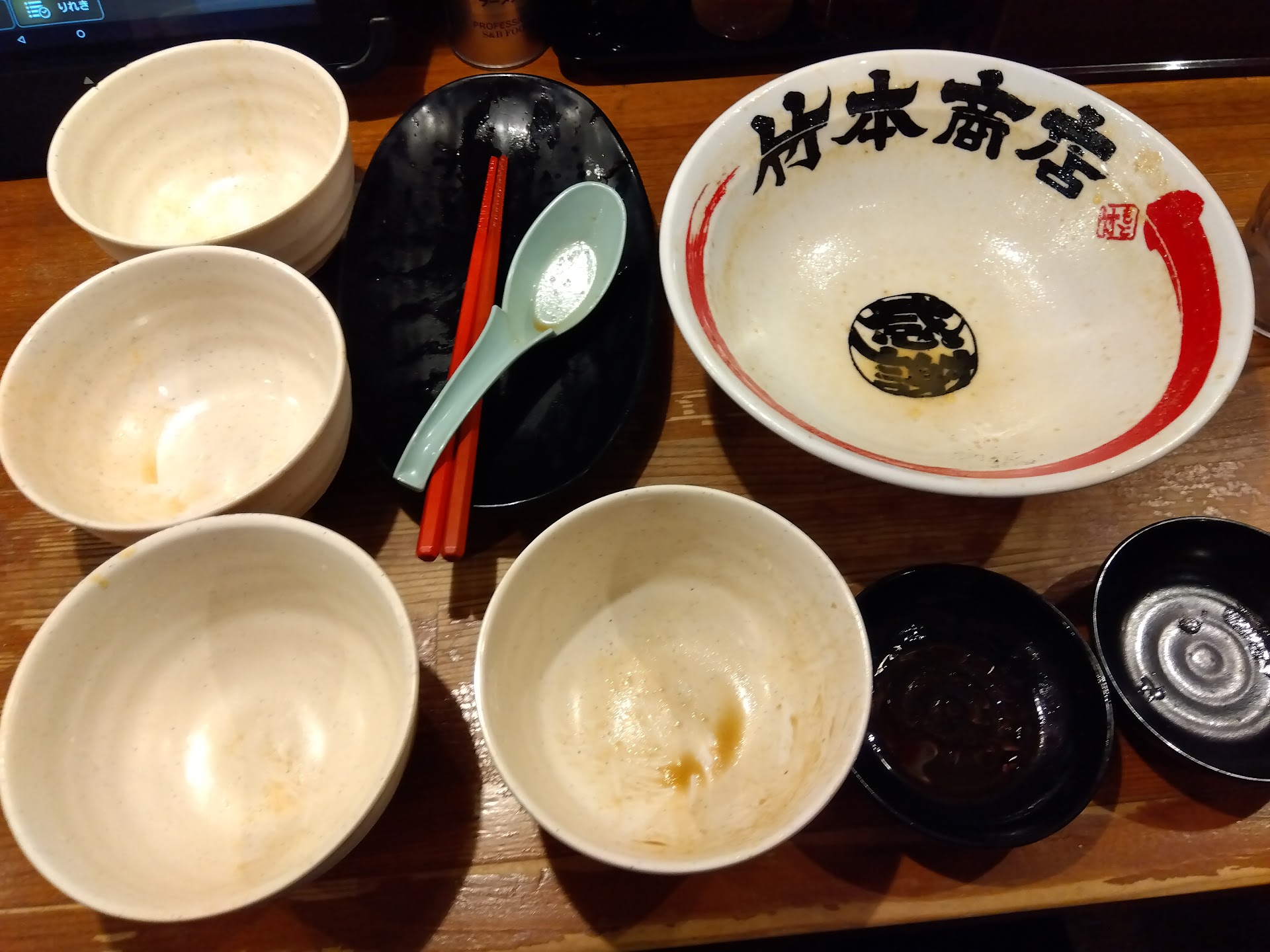 1/10 トレーニング後の21:20に濃厚スープを飲みたくてまた来ちゃいました! 注文は濃厚豚骨味噌ラーメン味玉1の1辛 餃子12個 おつまみ味玉1つ ライス4つ の健康面フルシカトのハードコアな内容に! せめてラーメンスープは残さなきゃヤバいと半分は残して一度食後の写真を撮ったんです 大満足でした ごちそうさまでした(と、一度マジで帰り...
