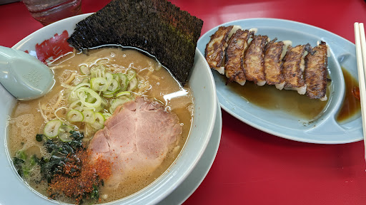 Read moreひと昔前は入店直後の豚骨臭が…💧という方が多かったお店、バリバリ豚骨の山岡家さんです。 今ではご飯時になると駐車場が埋まっています💦 24時間営業ということでかなりお世話になっております。 寺内店さんは入って左手手前に券売機がありそこからのスタートとなります。 自分は味噌好きなのですがここの味噌はちょっと自分には物足りないのでいつも醤油豚骨のノーマルを選びます。(特製醤油もあります) 麺は確か細麺と太麺が選べたはずです。細麺は縮れ系で太麺は短いストレートだと思います。 写真は豚骨醤油プラス餃子です。サービス券で頂きました。 ラーメンを一つ注文すると有効期限1年のサービス券が出てきて貯めると枚数に応じたサービスが受けられるというシステムがあります。 そのためラーメンの値段設定は少しお高めに感じます。よく動画なんかで鬼トッピングしてるやつがありますが、そういう使い方もアリではないでしょうか。(お残しは厳禁で) 他の方の口コミにもありますが注文時に麺の硬さ、油の量、味の濃さを加減出来ます。ここのチェーンはさらに食券でかなりの種類のトッピングができますのでより自分好みにカスタマイズ出来ます。 自分はネギが好きすぎてトリプルまで盛った事があります。 チェーン店や24時間営業だといつでも利用できる手軽さと、利用される方の幅も広くなるので評価が低くなりかちですが、その中でも高評価...