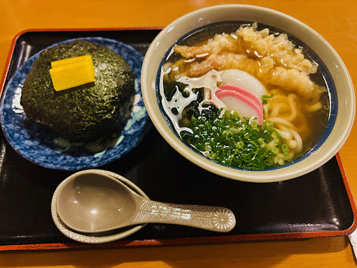 大きなおむすびと、天麩羅うどん(温玉いり) 食べました。(...