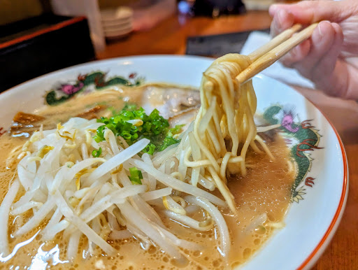 毎週火曜が替え玉無料なので茹で加減を固めで注文。 広島ではオーソドックスな中細のストレート麺かと思うが、最初より固めの方がコシがあり好みに近い。