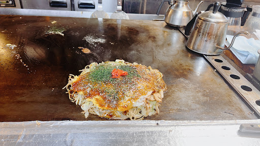 渋い昔ながらの地元に根付いたお好み焼きさん。初訪なので、ちくっと緊張しましたが… お店に入ると➰「鉄板?テーブル」と気さくに聞いてくれたので、鉄板でお願いしました。 鉄板はすわれて3人までですかね。運良く座れた感じです。