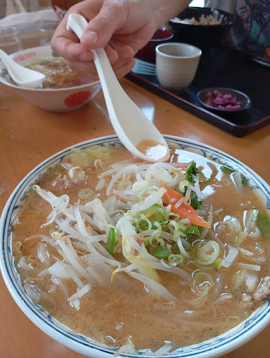 Read more入りやすい雰囲気と、車が数台止まっていたので入店。野菜味噌ラーメンを注文 麺は白に近く極細なのでびっくり 食べるとスープはあっさり 仄かに酸味を感じたが ツレは醤油を頼んだが同じく仄かな酸味を感じたようだ、しかし気になるほどではない。 釧路ラーメンの特長は あっさり、細麺というらしく なるほどその通り! 店内の壁にはエゾ鹿の顔のみの剥製が飾られ北海道らしいレトロな雰囲気、店の女将さんは愛想無いが嫌な感じは無く それもまた 田舎にある食堂の雰囲気と...