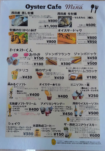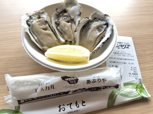 Read more道の駅厚岸グルメパーク内にあるカフェです。 生牡蠣は美味しいです。苦味がなく食感も良い。 オリジナルバニラソフトクリーム(¥480)も甘くて濃厚。暑い日に良いですね。 ただ、道の駅スタンプラリーの冊子には「ソフトクリーム各種50円引き」と書いてありますが、実際は通常のソフトクリームにしか適用できないそうです。残念です。 極ミルク牡蠣コロッケ(¥200)は普通です。 極びぃふメンチカツ(¥440)は揚げすぎてました。かたくて不味いのでオススメしません。 低評価につきまして、こちらのレジの方の態度が気になりました。名前は不明です。メンチカツとコロッケ、..と、自分では普通に頼んでいたつもりなのですが、ちょっと待ってください!!と強く言われ、そんなに大声張り上げなくても、「少々お待ちください。もう一度お伺いいたします。」で良いのにな、と思いました。えぇと○○でしたっけ!?と焦った様子で何度か聞き返されました。しかも内容違いました。年下だから強気に出ても良いと思われたのかな?とても驚いたし、悲しかったです。そのあと自虐的に笑って誤魔化していたのも不愉快でした。レジ操作もままならない様子で他の方に聞いていらしたので、新人さんだったのかしら。ずいぶんと余裕が無い方とお見受けしましたので大変かと思いますが、教育頑張ってください。牡蠣は確かに美味しいのですが、個人的に...