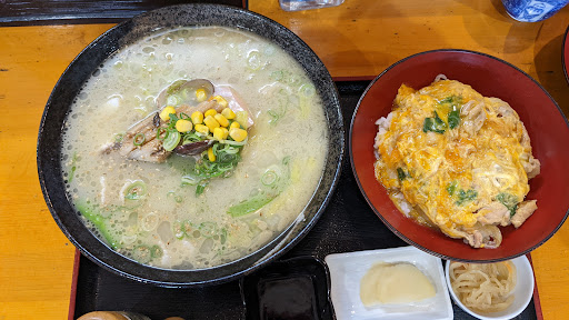 Read more2022年6月平日に昼食で利用。 親子丼が食べたい気分だったので、お店を探して来店しました。 本日の日替わりらしき「唐揚げ丼と麺類セット」をスルーして、親子丼650円と塩ラーメン900円を注文。 ●親子丼はザ王道です。特製親子丼DAYの写真の方が美味しそうなのでその日にもう1回来たいです。 ●塩ラーメンは穴子・イカ・魚の切身・豚肉・殻付きアサリが入ってます。豪華ですね。アサリの殻入れ容器があるのはありがたいです(アサリは3つ位ですが)。このスープが好きです。ギリキリ腹いっぱいにならない量なので親子丼も頼んで正解でした。 ●駐車場が狭めなので、入庫時にフロントを駐車場入口に方向転換させておいた方が帰りに出やすいです。特に混雑時。 ●きっちりレシートを渡してくれるのは好印象です。個人店だと言わないと無いことが多いのです。 ●居合わせた爺さん客は何回もチュパチュパと口を...