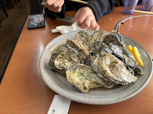 Read more旅行の際に伺いました! ここ数年坂越牡蠣をお取り寄せしていて、実際の現地に足を運んでみました。 近くに良いお店があったので来たのがここです。 10:30頃到着、くいどうらくさんの店舗入口から、海の駅の入口入ってすぐあたりまで既にお客さんが並んでいました。 1回で入れそうかなと思い11時まで待ちました。 本当は焼きが出来る座席が良かったのですが、あまり時間が無い為、今回は焼き物無しの食事でしたので 焼き物無しの座席目当てで並びました。 無事に最初の案内で着席できて良かったです! 蒸しガキ、お刺身盛り、酢牡蠣、牡蠣フライを家族で頼みましたが、どれも美味しかったです。 提供も早かったです(^^) 今季の殻付き牡蠣は解禁されたところだからなのか、少し小ぶりでしたが、味は変わらず美味しかったです。 蒸しガキ4個で1皿でしたが、小ぶりの為か2皿分で12個乗ってました。それはそれで有難かったですね。 お刺身も美味しかったです(^^) ささっと食べてお店を後にしましたが、お店を出た時には海の駅の入口までズラーっと、食事待ちのお客さんが並んでいました( ºロº) 大変人気ですので、10時くらいには到着して並ばれた方が良いと思います。 お茶やお水はセルフサービスでした!