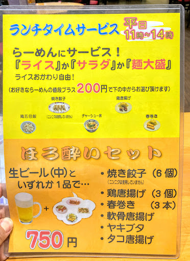 èµ€ç©é§ ã«é£æ¥ãã忥æœèšããã©ããèµ€ç©ãã®2éã«ããã©ãŒã¡ã³åºã§ããã¡ãã¥ãŒã®ã¡ã€ã³ã¯ã©ãŒã¡ã³ã§ãä»ã®ã©ãŒã¡ã³å±ãšåãããµã€ãã¡ãã¥ãŒãšããŠé€åãªã©ããããŸãããå± é å±ãšããŠã®åŽé¢ã䜵ãæã£ãŠããããããããŒã«ãªã©ã®ã¢ã«ã³ãŒã«é¡ã®ä»ãæè±ãåæãçãå žåçã§ã¯ãããã®ã®å€ãã®äžåæçãããããã«æããŸããé£äºãããã ãã§ãªããæ°å¿ã®ç¥ããå人å士ã®å°èŠæš¡ãªé£²ã¿äŒã®å Žã«ããããããããŸããã 絊ä»ãããã©ãŒã¡ã³ã®ã¹ãŒãã¯ãå¡©ã»é€æ²¹ã»å³åã®ããããã§ããããããããã£ãããšããå³ä»ãã§é£ã¹ãããã§ããã³ã·ã®ãã麺ã«ã¹ãŒãããã£ãããšçµ¡ã¿åã£ãŠãããããæåŸãŸã§çŸå³ããããã ãããšæããŸãããããã³ã°ãããŠããå ·æå«ããèŠãç®ããå žåçã§å¥ãè¡ã£ããããªãšããã¯ãããŸãããããããããããèããã宎äŒãçãäžããèŠçŽ ã®äžã€ãšããŠãå®å¿ããŠé£ã¹ãããã®ã§ã¯ããšæããŸãã
