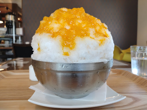 ランチ後ガソリンを入れたり買い物をして 食後のデザートを兼ねて #プリエール @ako.priere さんで かき氷(マンゴー)をイートインしました