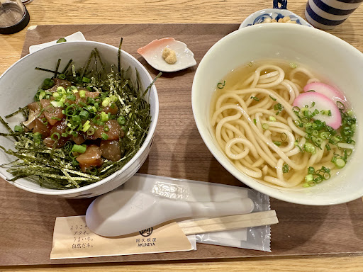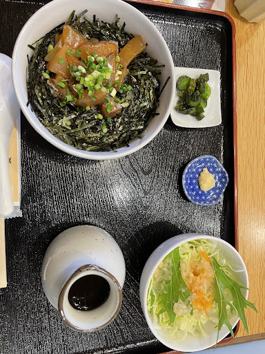 Read more阿久根駅の中にある食堂で、新しくて綺麗で安い! まず阿久根駅にびっくり!なんだかとてもオシャレで綺麗でした。 駅に併設されている食堂て入りやすい。 メニューをみてびっくり!とんかつ定食が1078円!(2025/5/8現在)とお安い!ありがたい! しかしここは我慢してせっかく阿久根に来たので海の幸を楽しみたく、私はさば飯とうどんのセットを、妻はアジ飯を注文しました。 サバ飯は鯖の旨みが、アジ飯も食べましたがこちらも鯵の旨みが感じられました。出汁がついてきて醤油とカツオの香りが高く味変をしながら食べる楽しみもありました。 うどんは給食のうどん感がありましたがお値段を考えると充分ありがたい、コストパフォーマンスに優れた内容でした。 横には阿久根の名産品やお土産なども買え...