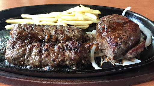 Read more妊娠していたのでハンバーグをよく焼きで頼みましたが来たのはレアとしかいいようのないハンバーグでした。鉄板で焼いても中までよく焼けなさそうだったので、もう一度焼いていただきたいですと伝えて渡すと、暫くしてやってきたのは真っ黒になったハンバーグでした。 一度こちらで切ったものをもう一度焼いてあるものですが、切った断面だけでなく全体が真っ黒。ほぼ炭化している部分までありました。まさかこれを平気な顔して提供するとは、とびっくりして何も言えませんでした。 元々こちらは注文時によく焼きにして欲しいと頼んだし、レアで出したのはそちらの落ち度です。サービス業に従事しているので焼き直しをお願いする際も横柄な態度など一切とっていなかったにもかかわらず、昼時でお忙しかったからなのでしょうか。これでもかと、よーーーーーく焼いてくださったようです。 主人はもう一度話をすると店員を呼ぼうとしましたが、私はこのような対応をされたのが悲しく、ほとほと呆れ、たとえ新しいハンバーグが提供されても食べる気にもならなかったので止めました。メインのハンバーグには手を付けずサラダバーのみ食べて帰りました。