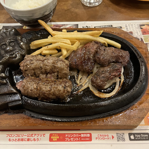 名古屋郊外の「あま市(旧・七宝町)」で撮影があり、酷暑の中フラフラと大通りを彷徨い、もう限界、というところで「ブロンコビリー」の看板を見つけて吸い込まれました。 今から35年以上も前の話ですが、小学生の時に住んでいた公務員団地(名古屋市名東区平和が丘1)の角っこにブロンコビリーがあり、誕生日などに連れていってもらいました。サラダバーも当時からあって、画期的だった気がします。子どもにとってはここのハンバーグは、ハレの日のご馳走でした。いつだったか、大人になって同店を訪ねると、お店の外観はそのままに、事務所(本社?)になっていて驚きました。 七宝店は、平日の昼ながら、行列ができる人気ぶりです。客層は女性が多いですね。未就学のお孫さんを連れていらっしゃる方も多いです。地域に愛されていることがよく分かります。 注文はハンバーグは欠かせないな。でもステーキも食べてみたいな。もう、大人ですから。注文すると、店員さんが「サラダバーはいかがなさいますか?」と言う。メニューを見ると、400円。「お願いします」と僕が言う。 注文を終えてほっとしていると、「ドリンクバーはいかがなさいますか?」と言う。慌てて3度目のメニューを見ると、180円とある。「じゃあ、お願いします」と僕が言う。 これでやっと落ち着いたと思ったら、「ジェラートバーはどうなさいますか?」と言う。もう、頭の中がこんがらがってお腹いっぱい、いや、頭がいっぱい。「うー、それは、いいです」と僕はいう。 店員さん、サラダバー用の皿を持ってきてくれる。いそいそとサラダバーへ。カットされた野菜以外に「小鉢」的な調理惣菜がいっぱいあるんですね。冷製パスタやポテサラなどもあり、ついつい欲張ってしまいました。 ドリンクバーは、コーヒーマシンに列ができていました。西尾張の人って、抹茶とコーヒーが好きですよね。私の父も母も西尾張出身だったので、普通に3時は抹茶かコーヒーか、という環境で育ちました。 肝心のハンバーグは俵形で、テーブルの前で店員さんが半分に切って、切れ目を鉄板に押し当てて仕上げてくれます。粗挽きの上をいく超粗挽きで、噛みごたえがある肉肉しいハンバーグです。表面は炭火焼きで香ばしく固め。中はジューシーで肉汁が溢れています。ソースはオニオンと醤油がベースなのかな?鉄板ジュウジュウで水分が飛ぶのか、結構濃い味付けです。 ステーキはこれまた赤味中心の肉肉しいもので、「オレは、草食ってきたんだぜ」的な(どんな的だ)ステーキです。脂感はなく、ヘルシー路線。厚みがあり、臼歯に力を入れてすりつぶすタイプの肉です。野生味があり、「あー、今、肉食ってるなー」感(だからどんな感だ)があります。 平日のランチにしては贅沢をしましたが、満足度が高いですね。思い出の味は、35年...