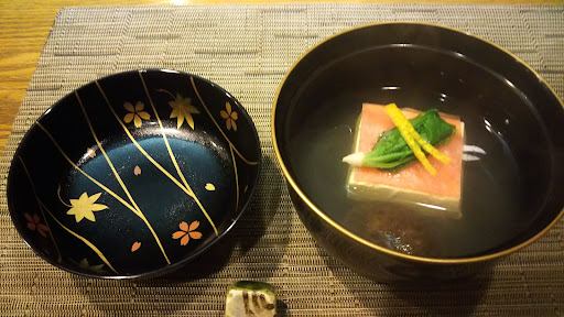 静かな雰囲気の、京料理のお店です。 お昼の料理の風コース、4700円をカウンター席で頂きました。盛り付けがとても綺麗で良いです。 折角とても良いカウンター席がありますので、奥の厨房で料理を造ってそのまま提供するよりも、カウンター内で仕上げてお客に直接出す方が目でも楽しめて味わいが出ると思いました。 ご主人と女将さんの対応はと...