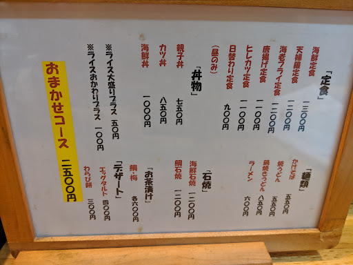2019/09/18来店 民宿に素泊りしたため、評価が高かったこともあり来店。 地元の方が集まる居酒屋さん。 一人二人ならカウンター、三人以上だとお座敷といったところでしょうか。 生ビールは650円と少し高く感じましたが、島で輸送費等もかかるでしょうしまぁ仕方ない。 全体的な価格は、他の観光地のように特段高いという感じではありません。 今回、おまかせコース2500円を注文しました。 写真が出てきた全ての料理でしたが、ご飯系が最後に出てきたら☆5でしたw 一品一品の料理は非常に美味しかったです。 少し物足...