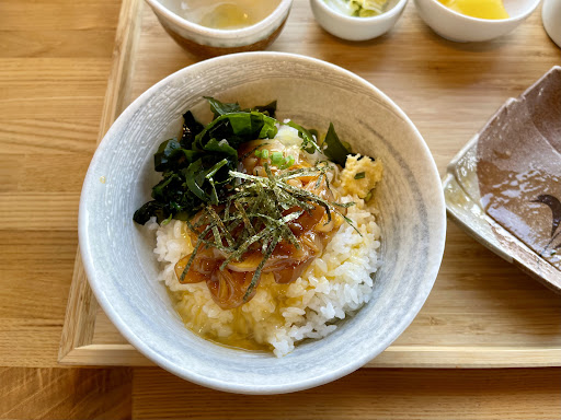 いただいたのは寒シマメ肝醤油漬け丼 寒シマメとは、隠岐ではスルメイカのことらしい イカそうめんのようなイカを肝醤油に漬け込んで、濃厚な卵の黄身を絡めていただく…至福の極みでした
