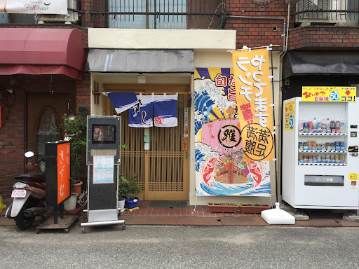 久しぶりに訪れました JR尼崎駅から南側1階に出て直ぐ線路沿いを西へ歩くと 徒歩1分くらいの場所にあります。 上を見て歩いていると 居酒屋雅って看板が見えますが、先代のお店が居酒屋だったようですね。 店の玄関はちゃんとお寿司屋さんらしい店構えになってます。