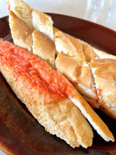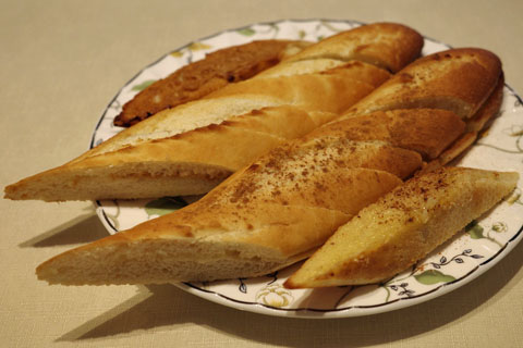 バゲッ塔は明太子を選択。硬いバゲットを想像していましたが、柔らかく、焼きたてで美味しい。4種類が1枚になっているピザもいろいろな味を楽しめました。サーモンピザの部分はサーモンなどの香りが良かったです。