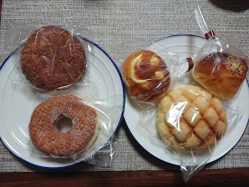 写真のは左がカレーパン、ハチミツ入りドーナツ 右がクリームボール、サツマイモ餡パン、メロンパン。 どれも美味しかったですが翌朝食べたので、20秒くらい、レンチン...