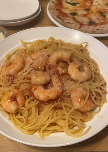 ピザでは「マルゲリータ」、スパゲッティは「エビのトマトソース」を注文します。追加料金でのトッピングチーズは別皿で出してくださるので助かります。またドリンクでは「タントパンチ」も注文可能です。