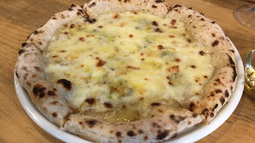 ◆クアトロフォルマッヂ ハチミツ付 価格 900円 石窯焼きでは無いけれど、先人のレビュー写真の通りなかなかに綺麗な焼き色ですね。 ただ、大きさ的にはやや小さめ。 蜂蜜をかけて頂くとチーズがとろっとろ〜! 口の中でとろける。 クリーミーなチーズと焦したチーズが口の中で合わさって香ばしくて美味い♪ 生地は程よいモチモチ具合で悪くありません。 唐辛子入りオイルをかけるとピリッと刺激が出て、味の変化が楽しい。 タバスコは臭いが薬みたいで苦手なのでかけない。 ペロッと完食です。