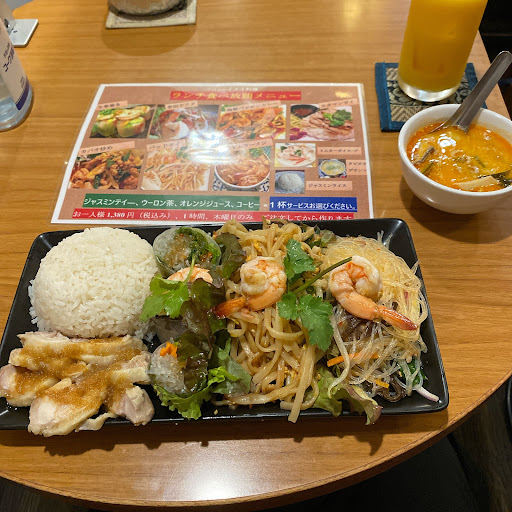 久しぶりにエスニックが食べたくなって、口コミが良かったこちらに行こう!と思い立ったのがたまたま木曜日。 木曜日は食べ放題ランチをやっていて、ラッキー! タイ人のご夫婦でされているのか、、、接客して下さった女性の方は奥様かな?キッチンは男性の方でした。 とても可愛らしい方で、気持ちの良い接客です。 狭い店内ですが、各卓にアルコールが置いてあり、ちゃんとアクリル板で仕切られているし、お客さんが帰った後はしっかりとアルコールをスプレーして吹き上げしているし、安心しました。 1380円でこんなにも食べ放題。ドリンクも一杯無料で、大丈夫なのかな…と心配するレベルのお得感でした。 味はほんとにどれも美味しく、お客さんも次から次からいらっしゃってました。 大好物のプーパッポンカリーはさすがにソフトシェルクラブではなかったですが、エビや貝、イカがたっぷりで大満足。 最後のデザートは、見た目にびっくりしましたが、ココナツミルクの甘さと、ちょっと塩気も入っていて、美味しかったです。 木曜日のランチがもしまたあれば、絶対ここに行きます。 それ以外でも、もちろんリピートします。 とってもいい時間になりました。...