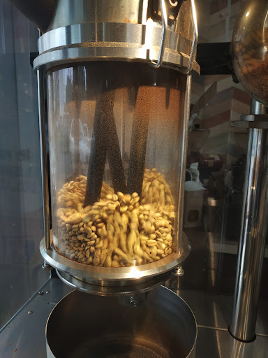 半年以上前から気になっていた。 今日はあいにくの雨だが、今を逃すと駄目な気がして飛び込む。 もっと早く来れば良かったと思わせる予想を超えた店であった。 要望を伝えると酸味の高い豆を選んで焙煎器してくれたが、この機械は殻を自動的除去するのだという。 これ以降愛...