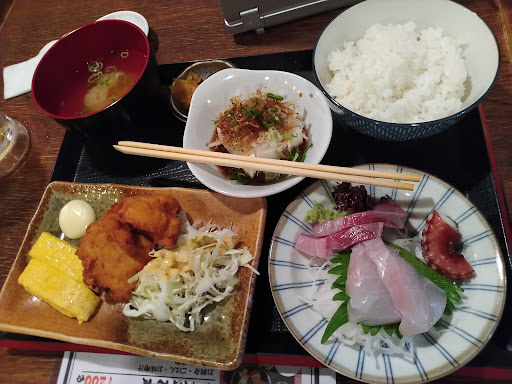 Read more阪急神戸線の塚口駅を下車、南側すぐにある、塚口サンサンタウンの1階に位置する、昼呑み、そして、尼崎的な価格(安価)が嬉しい、居酒屋さんです。 店内は、手前にカウンター席と二人掛けテーブルが数卓、奥に座敷席となっており、天井と壁一面にメニューが貼っています。 休日のランチに利用、カウンター席に座って、豚しょうが焼きを注文、約15分後に到着しました。 しょうが焼きは、厚めの豚肉たっぷりでごはんが進む濃い味です。メニューは、生野菜サラダ、ポテサラ、ミニ冷奴、漬物、汁物(薄揚げとわかめ)、ごはん(並盛)です。 お茶はジョッキで提供、ごはんはおかわり放題無料は⭕です。 一方、席が狭く...