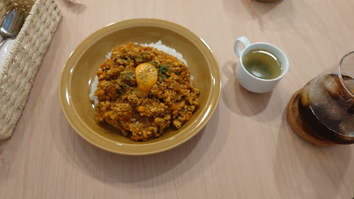 オーナー設計の『ワンちゃん基準の個室』で仕切られているから、飼い主も安心してオフリードで(もちろん、壁にリード用金具もついてる)お茶が(なにげにアル、ノンアルも)頂けます。食事も楽しめます。キーマカレー美味しかったです。
