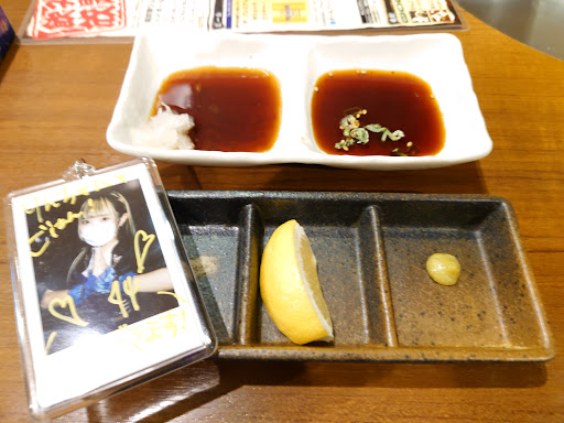 Read more厚切りのタン【も】最高✨でした!レモン&塩&わさび!どれで食べても美味し😋かったなぁ~!食感は、もとより肉の味も最高‼️ミノにテッチャンそれに、壺漬け肉も、🍚にバウンドさせても良しで大3杯も食べちゃいました(笑)ちなみに、いただきますチェキは、大阪拠点で活動している、IDOLグループ👑PLEVAIL(プリヴェイル)👑の黄色担当💛鈴ノ...