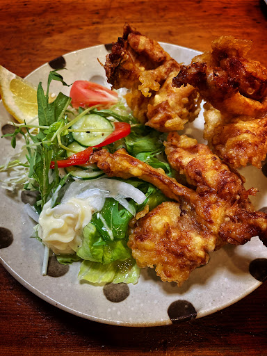 Read more初めて行きました。酒が呑めないと入れないお店だと思ってましたが、夜でも定食がある様なので行ってみました。唐揚げ定食、めっちゃ美味しかったです‼️外はパリッと中はジューシー、塩とかマヨネーズいらないです。味噌汁は赤だしで貝が入ってて、貝の味噌汁が飲めなくてにおいもムリなんですが、何故かにおいも味も大丈夫だったし美味しかったです!ツレは天麩羅定食でしたが美味しかったそうです。お造りが付いててそれも👍 1切れ貰ったのですが、魚介類が苦手で刺身は本当に美味しいのしか食べられない私が美味しく食べられました!...