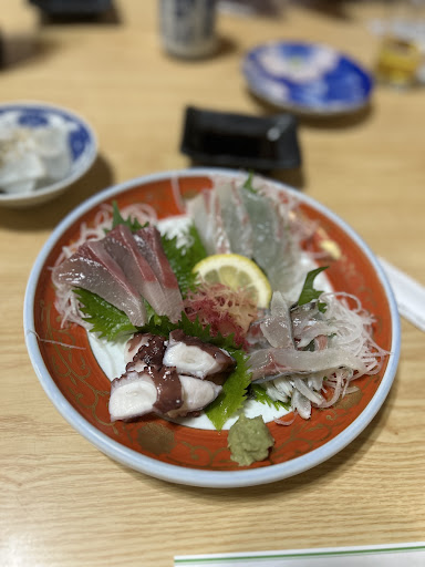 Read more天草市内で美味しい居酒屋があるといいなーと探して辿り着いたのはコチラ。 電話で確認しましたが、感じよくこれは当たりだな…と思いました。 何と言っても禁煙です!それだけで最高🎵 辿り着くと店内は程よい年季の入った感じで小上がりにお邪魔。 お一人でゆっくり食べられるおじさまがちらほら…良いですねー! お刺身や小鉢はセルフで取るスタイル。 店員さんは皆さん感じよくてほのぼの食べる事が出来ました。 全てお安い設定なんですね…驚きました。 その中でお刺身が美味しい!おでんも美味しい!押し包丁も最後食べましたが、ほうとうに似た感じでしたがまた違う家庭の味で最高でした。 ゆったり過ごす事ができたので、個人的にはリラックスして過ごせ...