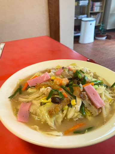 Read moreバイクで訪問しました。 通り沿いより少し入った場所にあります。 お店の前に駐車場があります。 入店後、テーブル席と座敷がありましたが、座敷にチェックイン。 着座後、この季節にありがたい麦茶を提供されました。 この地域に愛されて多数のメニューが並んでいます。 天草はちゃんぽんも有名ですので、人気メニューのちゃんぽんを注文。 着丼で野菜と豚骨の香りが芳しくします。 野菜もしっかりとれて、醤油豚骨ベースのしっかりしつつも、くどくないスープは箸が進みました。美味しく頂きました❗️ 店主さんもバイク好きらしく、最後にバイクライダーさんだった私たちににお声かけ頂きました。お腹も気持ちも...