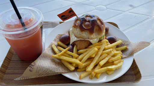 Read more大浜海水浴場へ訪問時に同じエリアだったので寄りました。 名物感のあるウミガメバーガーは、パンの形がウミガメのフィッシュバーガーでした。テラス席で...