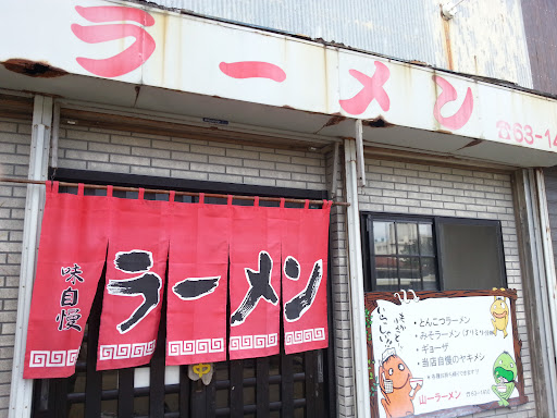 ”山一ラーメン” 勝手が違うのか、暖簾が掛かっていても入れない事も有るそうで、先ずはその確認です。 そこ迄は送って頂いたのですが、その後にお別れ、無事に入店です。