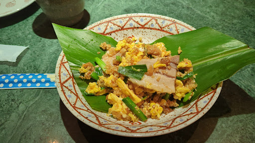 豚みそは、豚肉とつぶ味噌、いった卵、鰹節、にら?を焼いたもの。ゴーヤチャンプルに近い食べ合わせ。 つぶ味噌が特徴的で米麹の形、食感が味わえ、麹の食感と風味を味わえる。豚肉は新鮮で奄美の豚だと思う。冷凍ではない。 少し味噌が強いので、ライスを注文。定食風に食べるならちょうどよい。わたしは飲まないが泡盛とかお酒と一緒ならどちらも進むだろう。