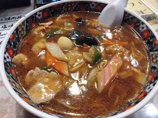 Read more広東麺 醤油味の餡かけ お酢とコショウで。激辛味噌ラーメン むせないレベルの辛さで美味しい。ごま味噌ラーメン 濃厚なごま 〆に半ライスドボンがおすすめ。スタミナ丼 酢豚みたいに角切り揚げてから炒める 脂身も甘く美味しい。餃子 手作り野菜たっぷりにんにくしっかりでビールが欲しくなる。タバコが吸える。とにかく安い。店内やトイレは掃除が行き届いている。カウンター5席パーティション有り テーブル1卓10人掛け 座敷有り...