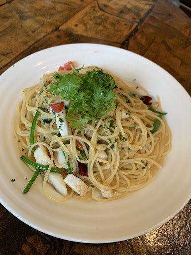 個人的な要望がいくつか。 サラダについてはトマトをカットして提供していたが、別の席の方には小さくカットされていなかった。 個体差のためか、田舎のお店なので、野菜は大きめで種類も多い方が満足度が高いと思います。 パスタについて、固さはアルデンテであり、つるっとしており、基本に忠実。味付けもよいと思います。惜しかったのは具材。もう少し具だくさんにしていただきたかった。 デザートは、季節柄か、柿が添えられて提供されたが、好き嫌いもあり、確認すべきであったと反省。無くても成り立つと思いました。 コーヒーはカップの飲み口が斜めに切られた形。変わっているなぁと思いつつ、オーソドックスな形の方が安心します。
