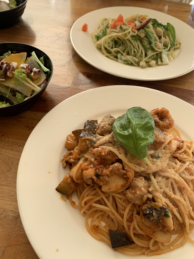 前から気になっていたのに未訪問のお店。本日のランチを注文。サラダ、パスタ、ドリンク、デザートの構成。 サラダは新鮮野菜で量多目。エビと生のりのパスタは、ニンニク控えめで海苔の風味が活きていて絶品。デザートのティラミスはもう少しチーズが強いと良かったかな。でも盛り付け含め好印象。 他の方が触れていた接客面は可もなく不可もなくだった。笑顔があれば印象は大分変わるだろうなとは感じた程度。 お一人で切り盛りされているが手際は良かったと思う。 大盛り料金がもう少し安ければ...食いしん坊的なわがままな要...