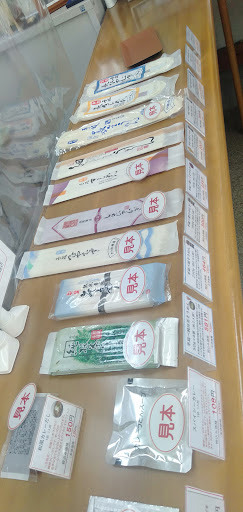お土産は、やはり、半生そうめんで。 自分にも買いました。 右脇には、アウトレット商品もあり、 しそひやむぎ、なんてのが200円。 買ってみましょう。
