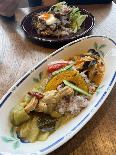 数量限定yyランチ、デリプレートをオーダー。 基本¥1,700税込に、メインをココナッツミルクのスパイスチキンカレー(+¥330)に。 食後のデザートはバニラビーンズアイスクリーム。 食後のドリンクは、有機栽培アイスコーヒーを。 締めてトータル¥2,140です。 とても満足しましたし、お値段以上と私は感じました。 提供が遅いとのレビューを見ましたが、最後にワンプレートで出てくるまで、一品、一品懐石のように提供されるので、落ち着いて味わえますし、凝った店内装飾や壁の複製クリムトの接吻ポスターを見ていると飽きないので、遅さは気になりません。 むしろ、ゆったりと過ごせて、贅沢な休日のランチにピッタリだと思います。 洋風、和風、エスニックの融合したおばんざい屋さんのような感じです。季節の野菜を使い、季節感に合った味付けをされています。 前菜から爽やかな柑橘系とすっきりとした酸味で 食欲が増します。 プレートにのったメインと小鉢とご飯を三角食べしていると、その深く複雑な味わいに嘆息します。 サッと食べて、すぐに席を立ったつもりでしたが、 入店から1時間10分居ました。 なるほど、ゆったりとくつろげたのは感覚だけではなかったのですね。 お店のこだわり通り、美味しくて楽しく幸せな時間が過ごせ...