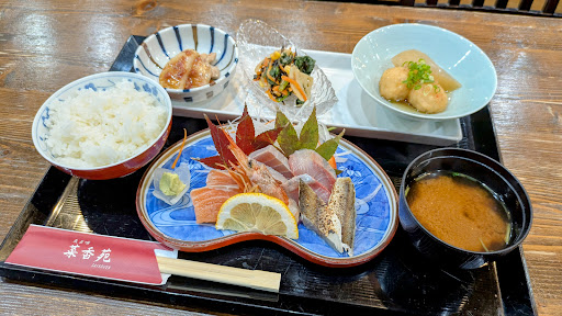 こちらでランチの『お刺身贅沢盛り』(1480円)を注文しました。 メインのお刺身の他に、副菜3品・ご飯・味噌汁、そして食後にコーヒーか紅茶が付いてくる内容でした。