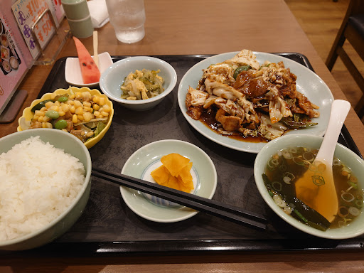 テーブル席六席の小さめな店だけど。綺麗。 おそらくご主人、奥さん、娘さんの家族経営かと思います。 行った時にお客さん居なくて入るのに少し勇気要りましたが、一口食べて一安心でした。 回鍋肉定食いただきました。回鍋肉、御飯、スープ、サラダ、ゴーヤチャンプル、漬物、デザート(季節によって変わるらしい)で税込1180円。 まずサラダが凄く具だくさんで美味しかった。回鍋肉も自分好みの味でした。スープもちょうどいい味。このサラダ付いてこの価格なら有りだと思う。 美味しいのにお客さん少ないので是非とも行...