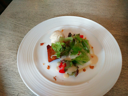 食べたのはパスタランチで豆乳ときのこ、ベーコンのクリームパスタ。(前菜のサラダとドリンク付き)クリームと言いつつほぼスープパスタでした。豆乳のあっさり感を、にんにくを利かせて美味しく仕上げていました。