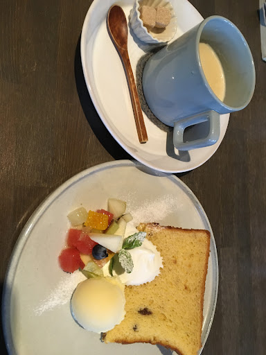 Read moreコーヒーとシフォンのお店という事で、ケーキはシフォンを注文させていただきました。 胡桃とドライフルーツのシフォンを選択しましたが、オレンジピールっぽい味が時々する、もっちり生地のシフォンで美味しかったです。 モンブランもとても可愛かったので食べさせていただきました。 上にのっているのはマロングラッセだと思うのですが、煮詰めて柔らかくなったものが多い中、少し固めのしっかりした栗でした。 外のクリームが栗というよりは、中に入っている細かい栗で栗の味がするという感じでした。 少し小さめのケーキかな?と思っていましたが、お皿に綺麗に盛られて出てきました。 割られたメレンゲ焼きもシュワシュワして美味しかったです。 色々飲んでみないとわかりませんが、コーヒーは雑味少なめで飲みやすい感じでしょうか。