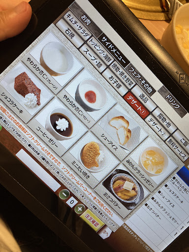 火曜の21時過ぎに来店。 まず、品物到着までがかなり遅いです。 当たりが静まり返ってるにも関わらず水1杯に5分以上かかりました。 デザートは1一度に15個頼んだとはいえ来るまで10分かかりました。 数年前ローストビーフ丼を頼んだ時30分かかった事があったのであまり改善されてない印象を受けました。
