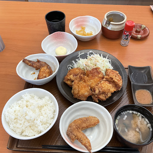 Read more特盛唐揚げ定食が好きでたまーに行く。ご飯にキムチ乗せてマヨネーズかけて唐揚げと一緒に食べると以外に旨い。レモン嫌いだから搾って水にまぜまぜして食後に飲むとサッパリ爽快で割引き券と一緒にご機嫌で帰れます。そういえば最近はご飯大盛り無料じゃなくなっちゃったんだなぁ。くやしいです。あとキムチも無くなってカウンターが仕切り板でクッソ狭くなってタッチパネルで注文で食後の割引き券も無くなってた(笑)相変わらず美味いけど。何か、おーん、って感じになっちゃったなぁ。(追記)2025年2月25日現在では大判揚げが無くなって得盛り唐揚げ定食もありませんでした。1番ショックだったのは今までセルフだったマヨネーズが15グラム30円の追加料金になっていた事。量が少なく自分は要らない甘だれや味噌が強制で付いてきて唐揚げ自体も味が薄く食が進まない感じになっていました。唐揚げを食べるならもう行かないかなぁ。どんどん酷くなるのに人は多くて...