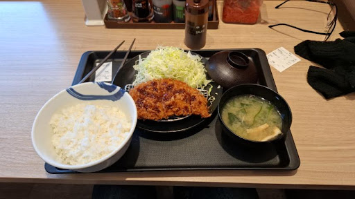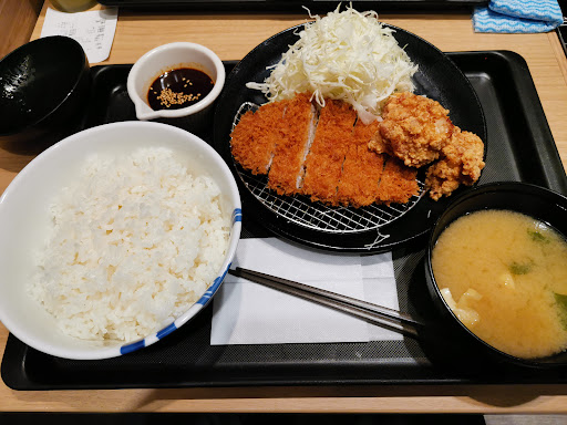 Read more最近松のや併設店舗になりました。 かつやをいつも利用してますがお試しで行ってみました。 まず券売機がとても分かりづらいです。初見で注文するのに数分掛かりました。 メニューは松のやと松屋に別れていて選択し更に丼物や定食・合盛り・サイドメニューから探し更に御飯の量を選択します。これが結構時間が掛かり混雑時だと大変そうですね。 また支払い方法もクレジットカード・QRコード・電子マネーが有り選択後支払い方法を間違えて他に変えるのに戻るを押しても戻れませんでした。結局残高不足の電子マネーで故意にエラーを出し戻れました。支払い後も精算出来たのか出来てないのか発券されるまで分かりづらいです。 流石にこの券売機は改善した方が良いと思います。 料理はロースかつと唐揚げ合盛り定食を頼みましたがトンカツはかつやに比べ小さ目でボリュームが無かったです。ソースも酸味が強めで別で頼んだ味噌も塩気が強めでした。 キャベツも水切りが不十分で少しベチャ付き気味です。 テーブルに色々な調味料があるのは良いと思います。